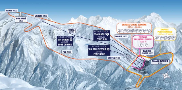 - quick and easy access from the resort via the Belle Étoile hybrid-lift, the Diable hybrid-lift or the Village 1800 chairlift